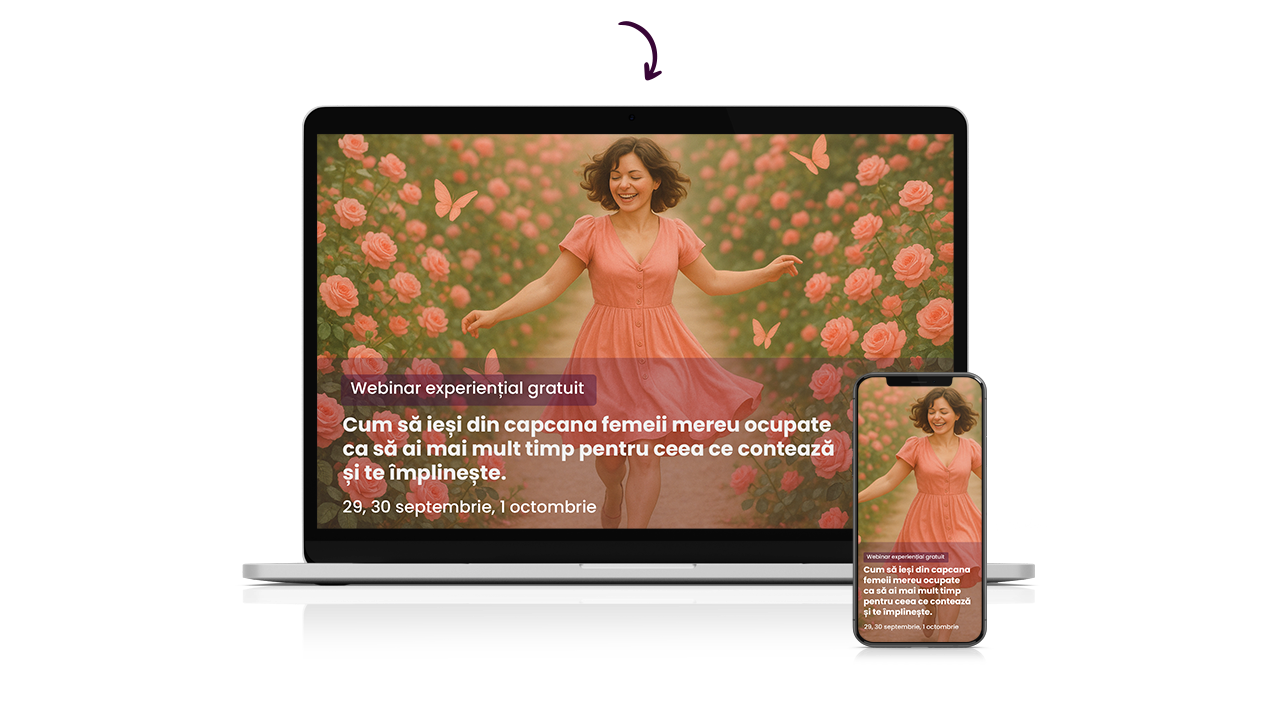 - Plan concret: ce pași poți face imediat pentru a-ți recăpăta timpul, energia și bucuria de a trăi pentru tine.